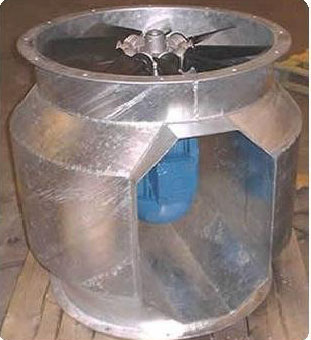 All axial fan casings are rolled and flanged from heavy-gauge mild steel and hot-dip galvanized after manufacture. The standard casings enclose the impeller and motor completely and weatherproof external terminal boxes are standard.