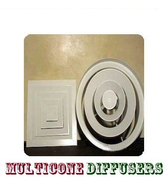 We are engaged in manufacturing and supplying a superior quality range of Multicone Diffusers. This is available in MDC model and is suitable for air distribution as per global standards in various industries. These help in creating efficient air distribution and also maintain various ceiling patterns. We use high grade aluminium in construction purpose to ensure different air pattern control core designs for horizontal diffusion.